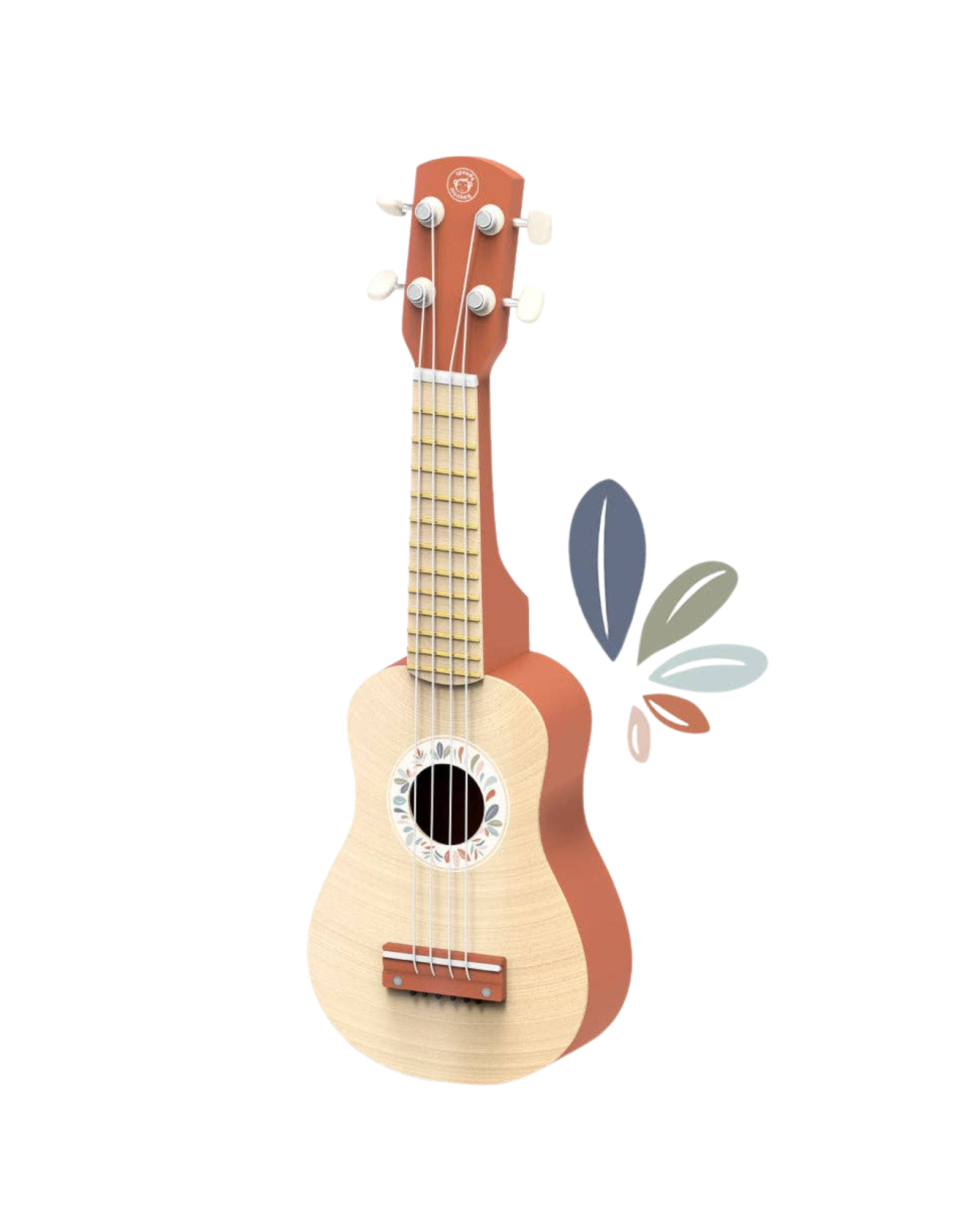 Description Because music ignites all areas of child development, this soft nylon four string toy ukelele is a must have for your little one! A nice terracotta and wooden color with surface coating designed to prevent finger injuries. Easy to carry around, your child will enjoy the sound and actively stimulate his apprenticeship. This wooden toy ukelele will encourage the development of their musical aptitude.