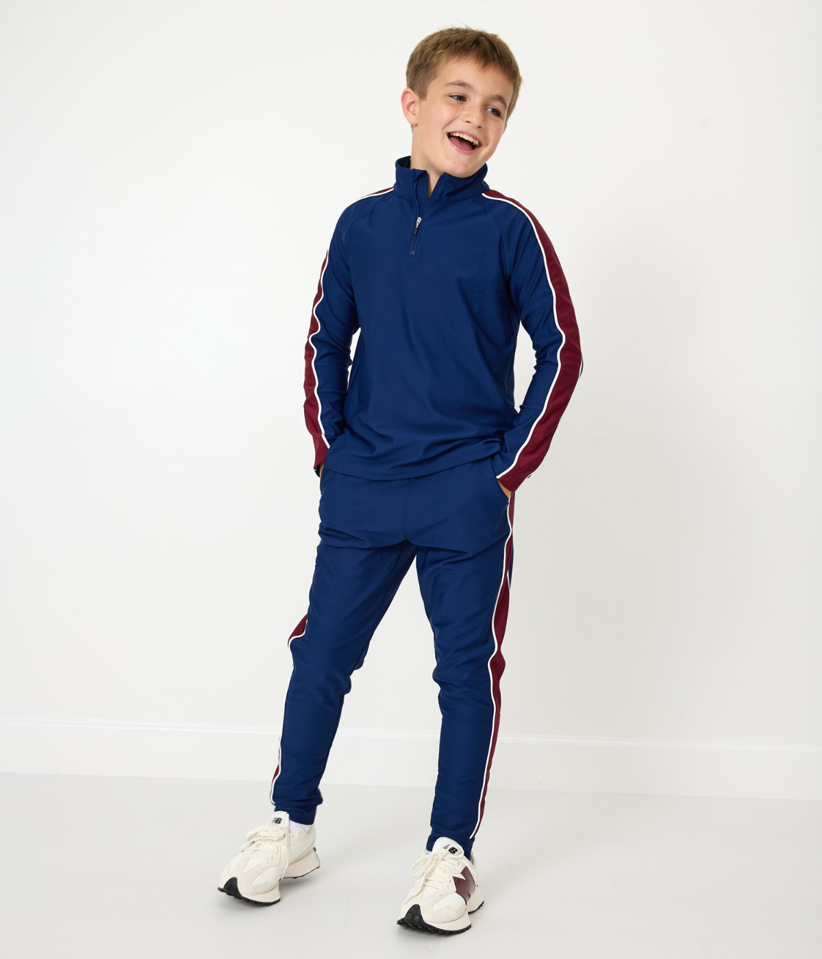 Built for warmups, school days, and weekend play, our boys sideline jogger delivers all-day comfort with a classic athletic look. crafted from soft, breathable performance fabric, it features contrast side stripes and a secure elastic waistband for an easy fit. side pockets keep essentials handy, while ribbed cuffs make these joggers perfect for sneakers on the go.