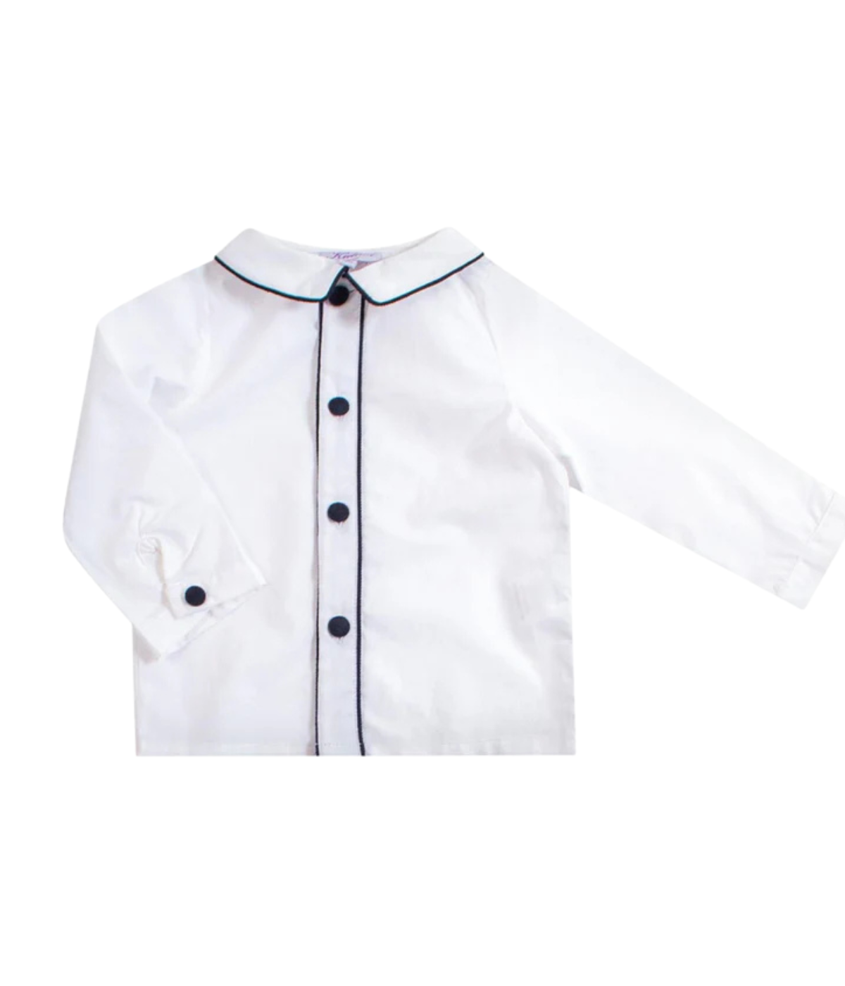 Boy's long-sleeved shirt, mac milan collar, navy piping, in White poplin