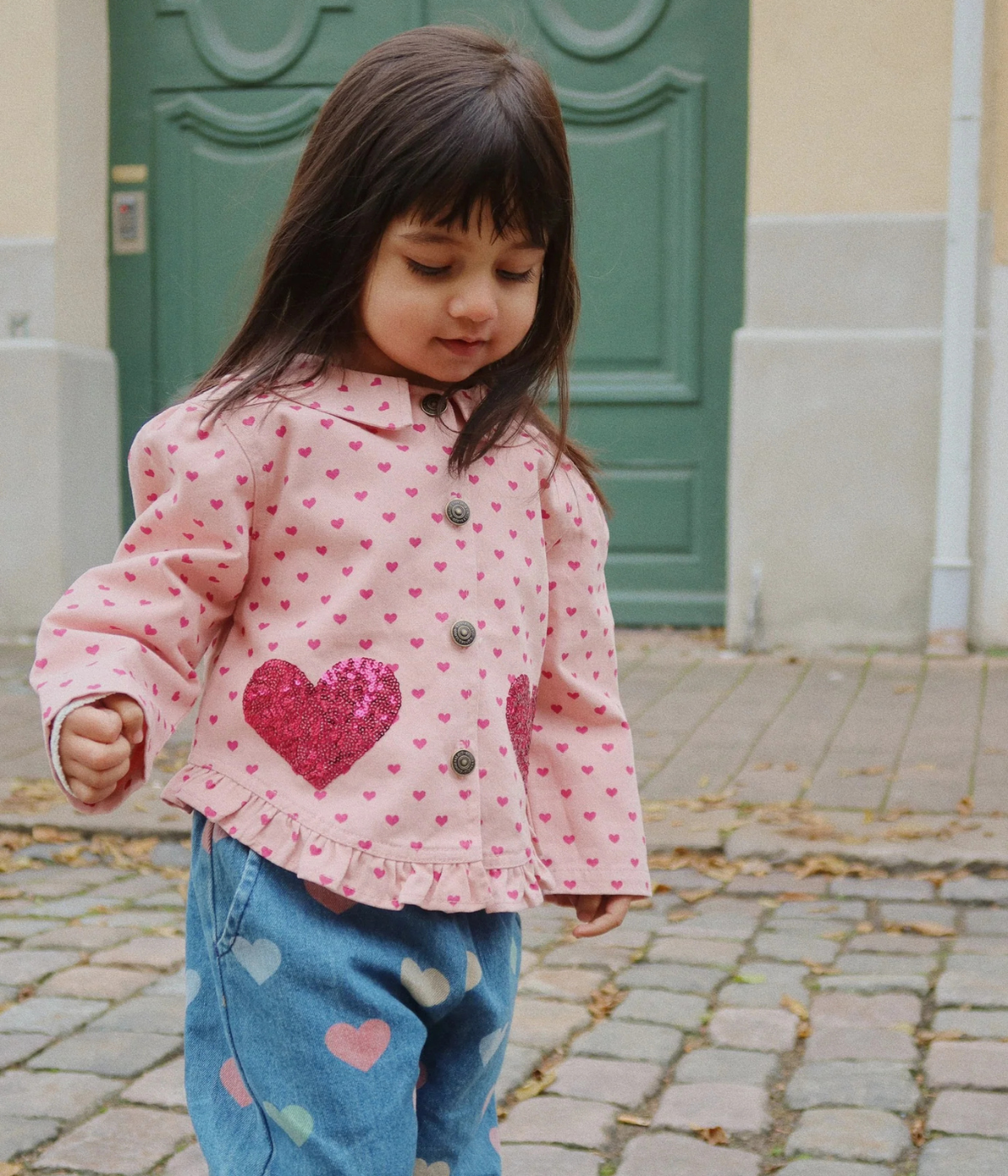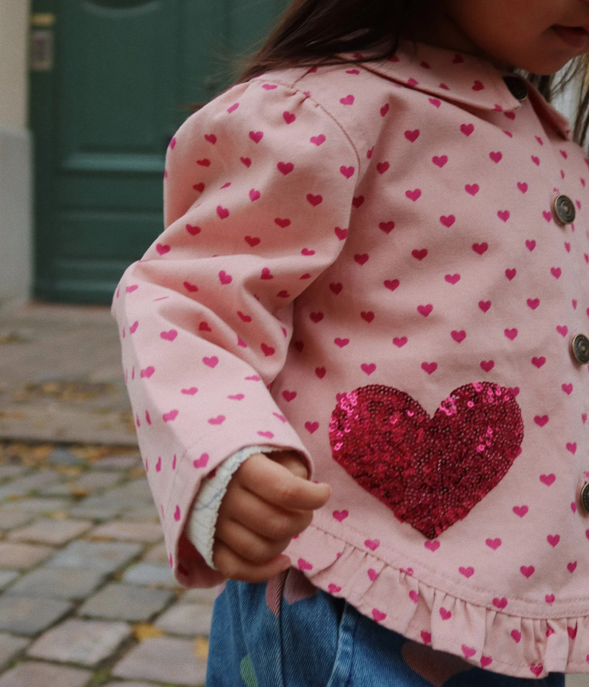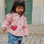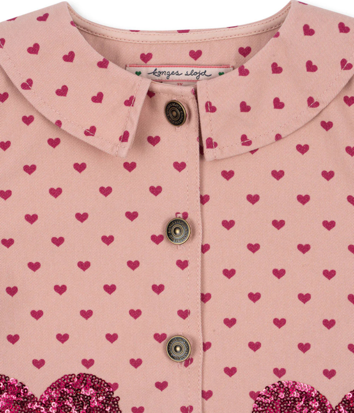 Shirt jacket in a cotton twill quality with sequins, a regular collar, and frill hems.
