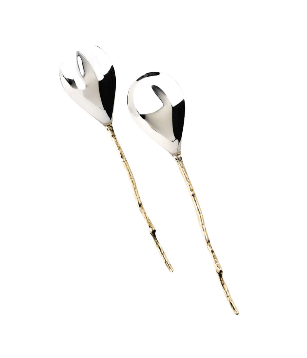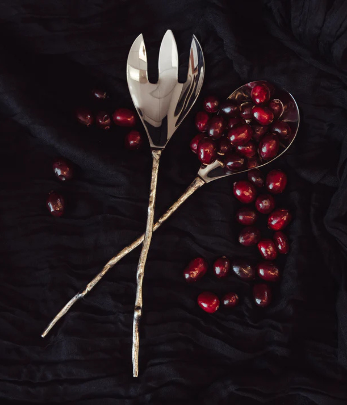Olive Branch Serving Spoon Set - Brass + Stainless