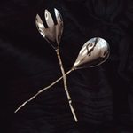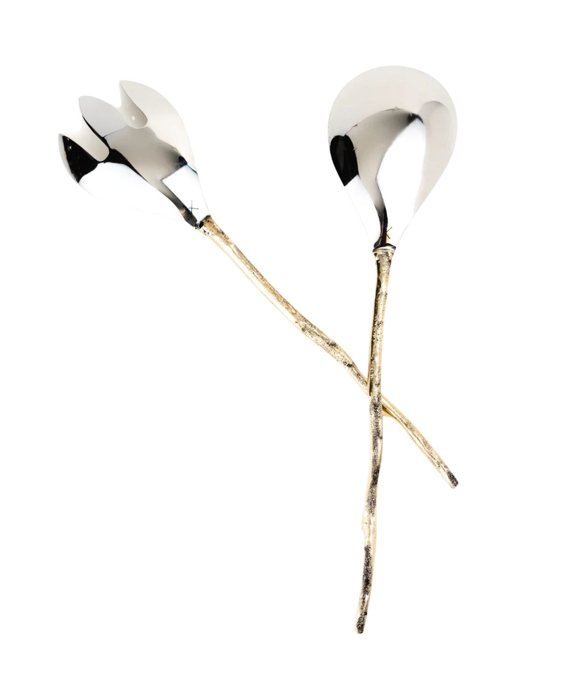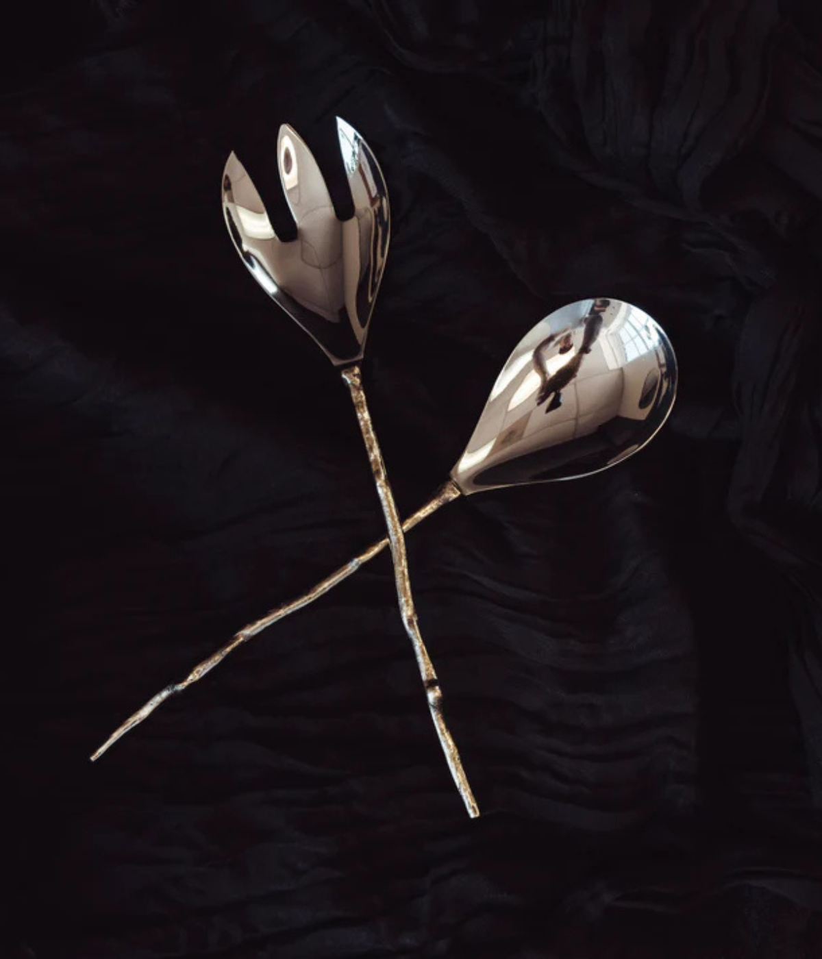 Handles cast in solid brass from olive branches found in Italy with stainless steel cutlery spoon + fork