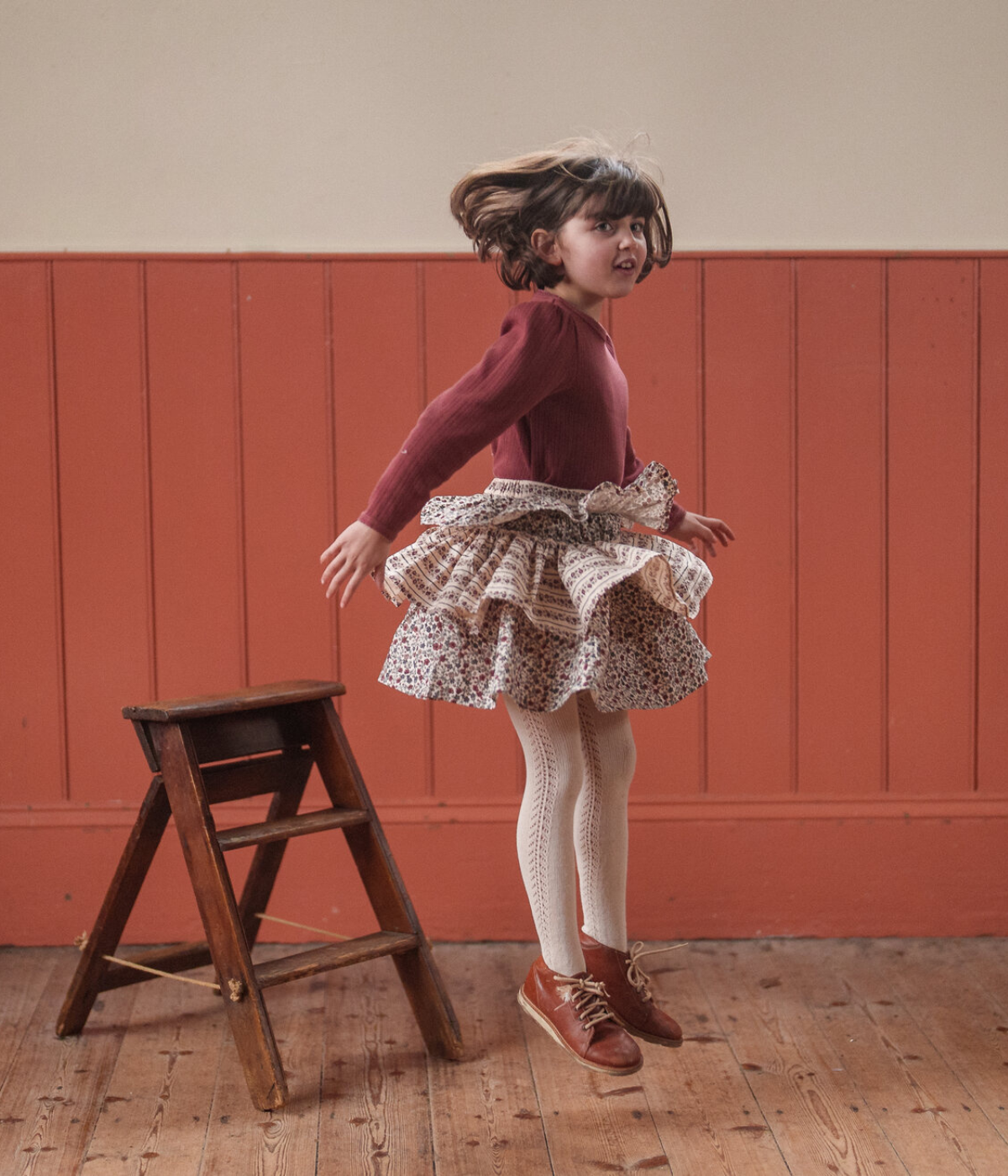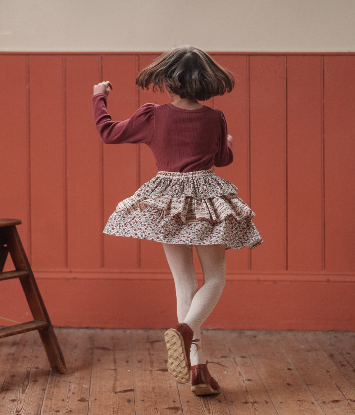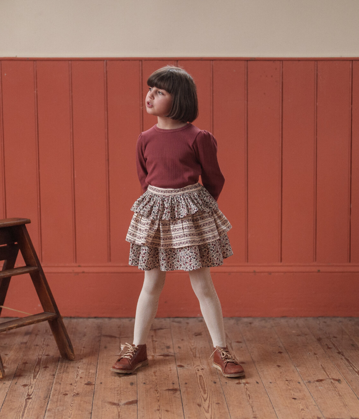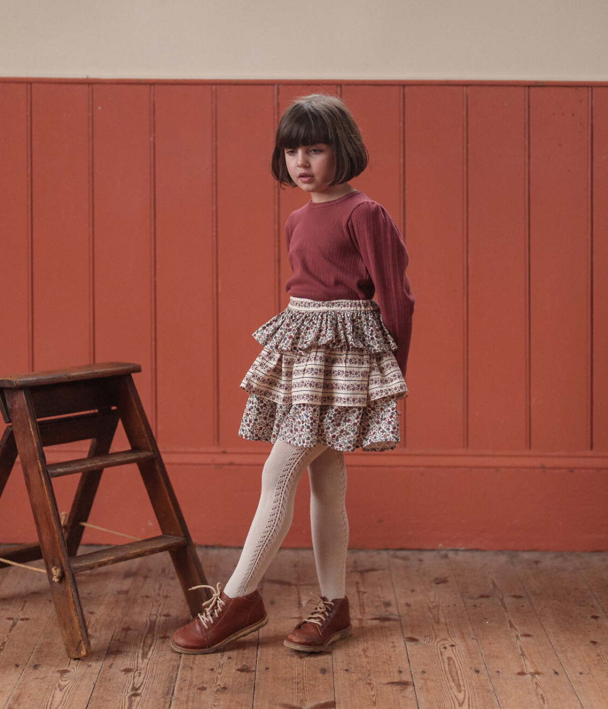 A lovely, simple and comfortable everyday t-shirt. Made from soft, organic, pointelle jersey fabric. Perfect with any of our bloomers, trousers or skirts. Smaller sizes have a press-stud neck opening.