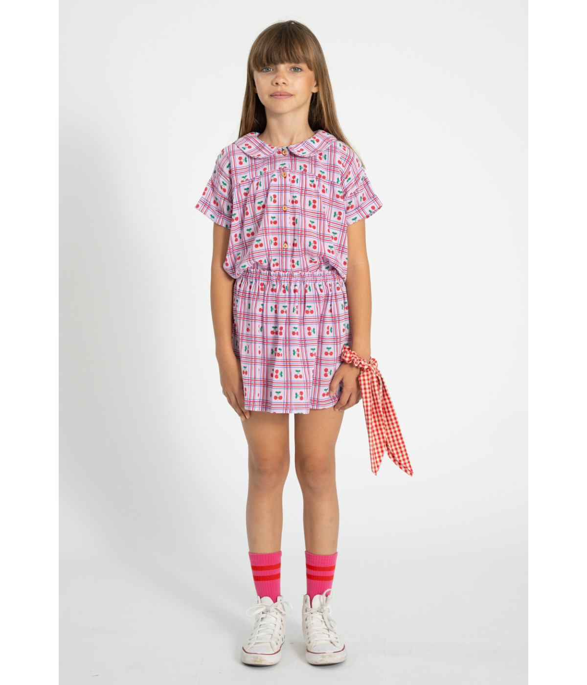 Peter Pan Collar Shirt - Lilac W/ Cherries Allover