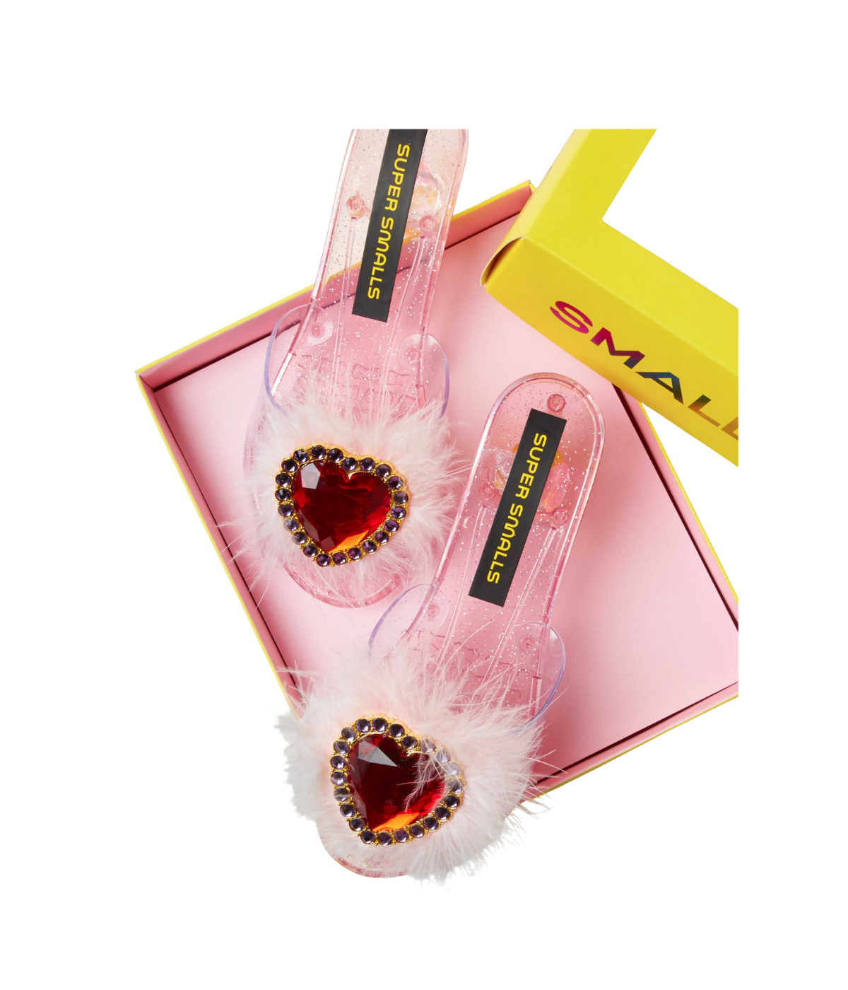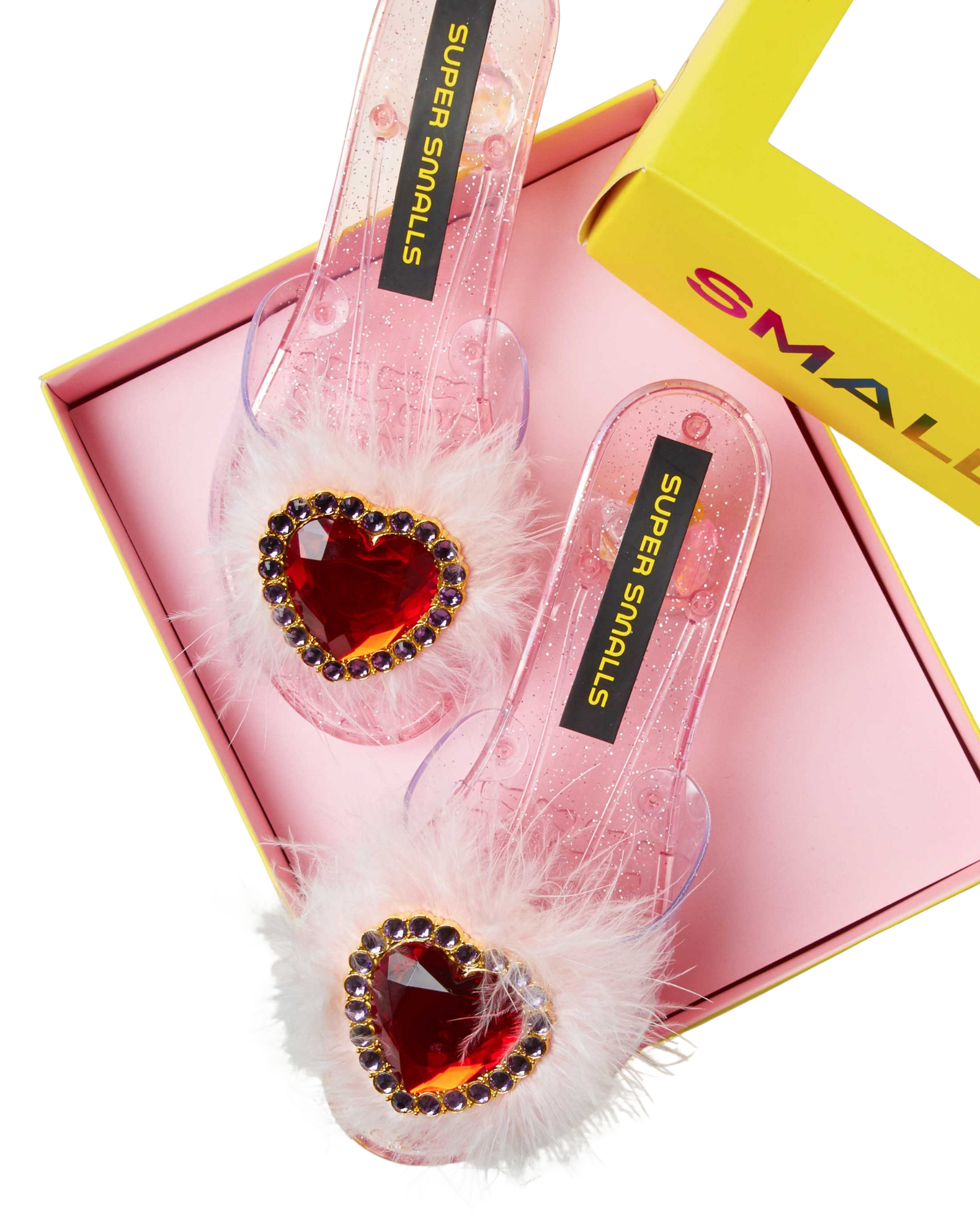 The shoes that’ll set your heart aflutter, the Daydream Queen Play Shoes are ready for their dress-up debut! Featuring a glitter design, oversized red heart jewel, feather accents, and pearls and gems inside the heels (make music while you walk!), they’ll inspire pretty in pink playtime daydreams.