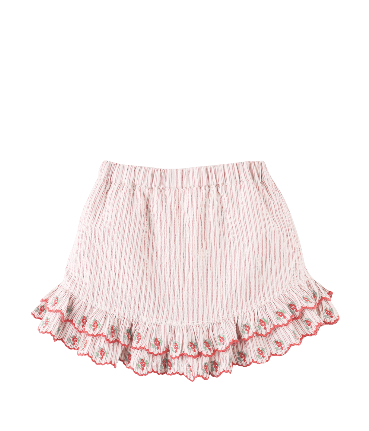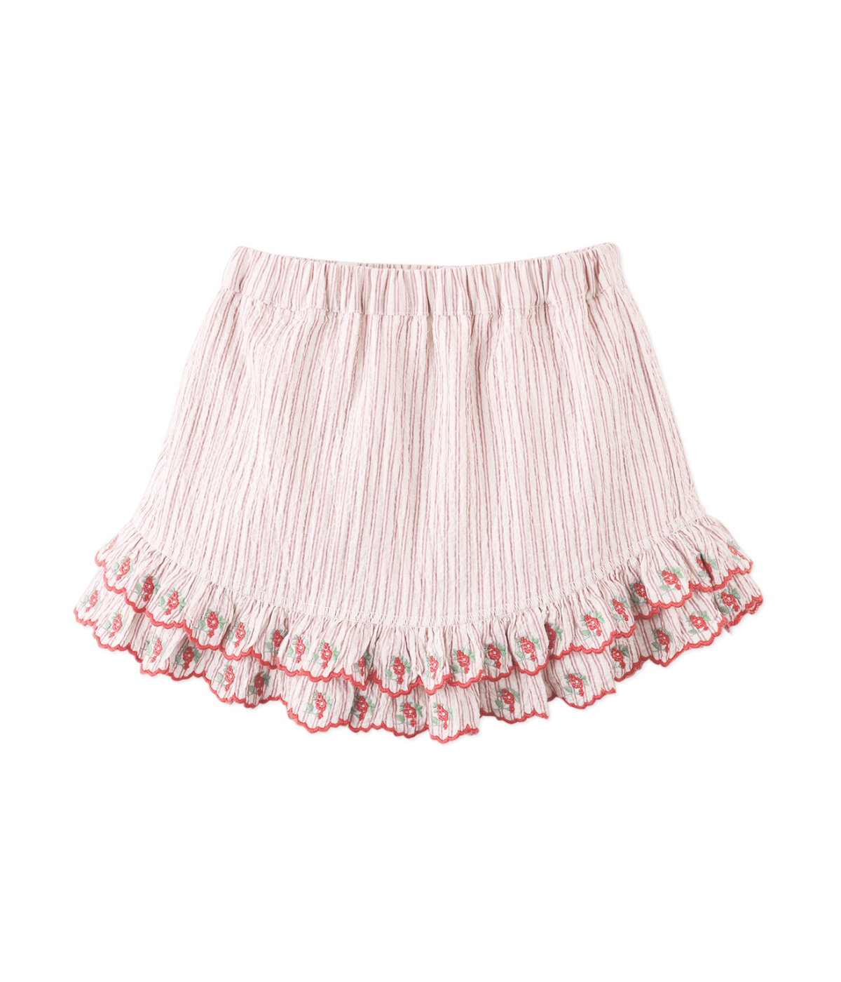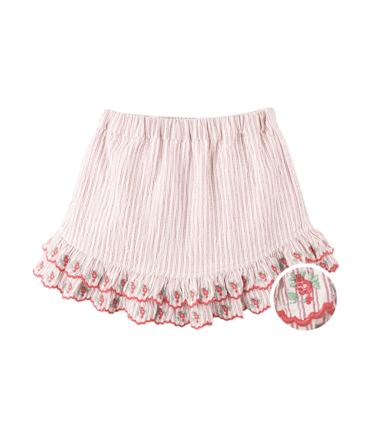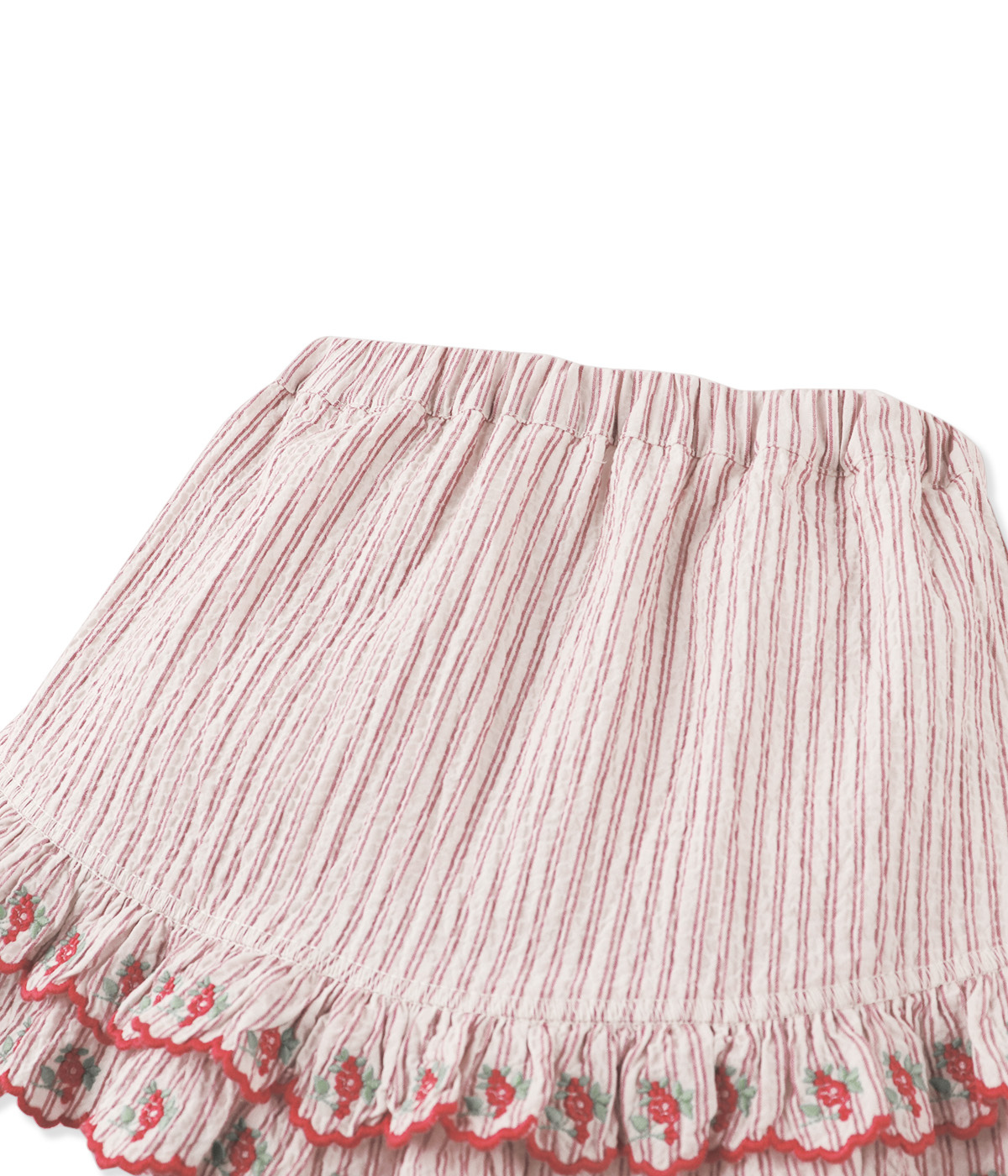 Girl Remi Ruffled Hem Skorts With Botanical Embroidery - Red
