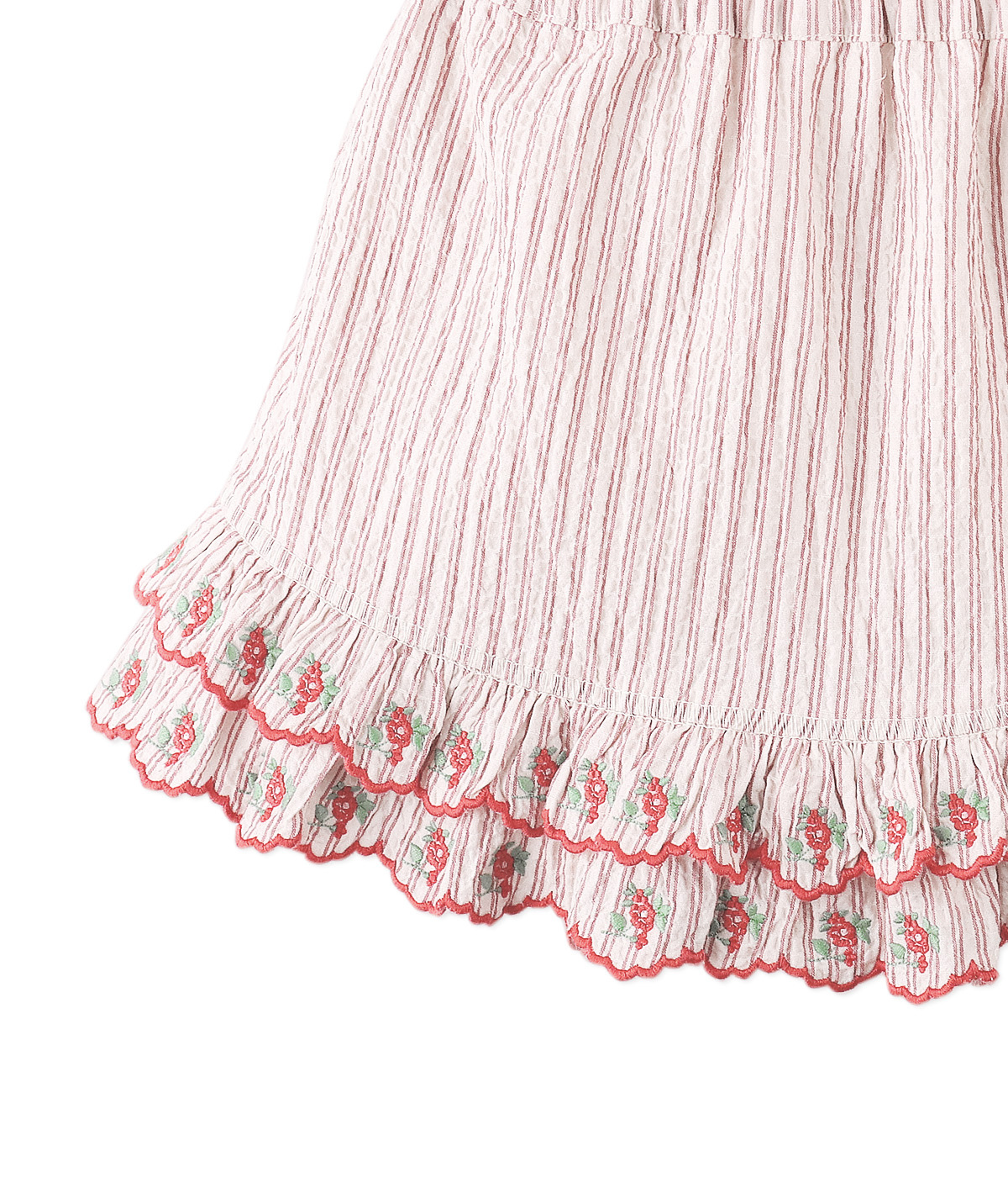 Twirl into summer with these charming Remi skorts, where playful ruffles meet delicate botanical embroidery. The vibrant red hue brings instant energy to your wardrobe, while the built-in shorts keep you comfortable and confident all day long.