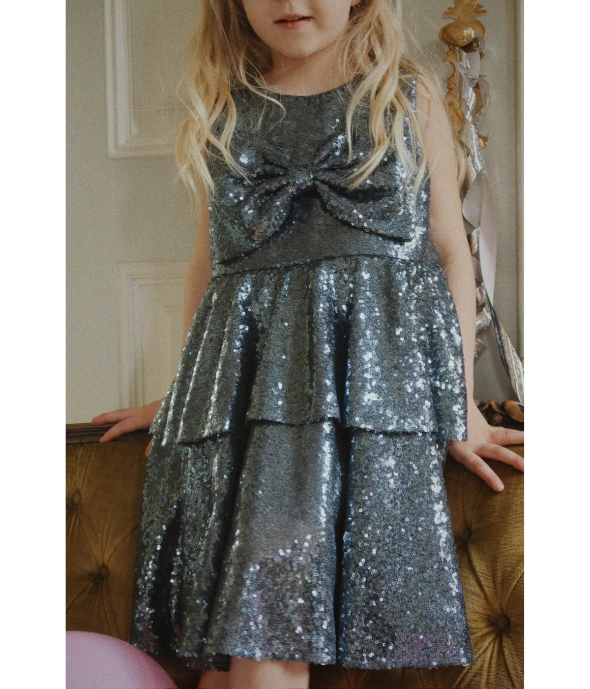 Designed with all-over sequins and an oversized bow in front, our Rosie dress is a real showstopper.