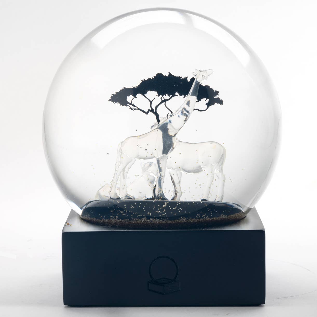 A crystal giraffe, a zebra, and a leopard showered in gold. Our tribute to the disappearing animals of the wild. A portion of sales will be donated to the World Wildlife Fund, as part of our Globes for Good Program. Glass globe on our Iconic Square Black Base