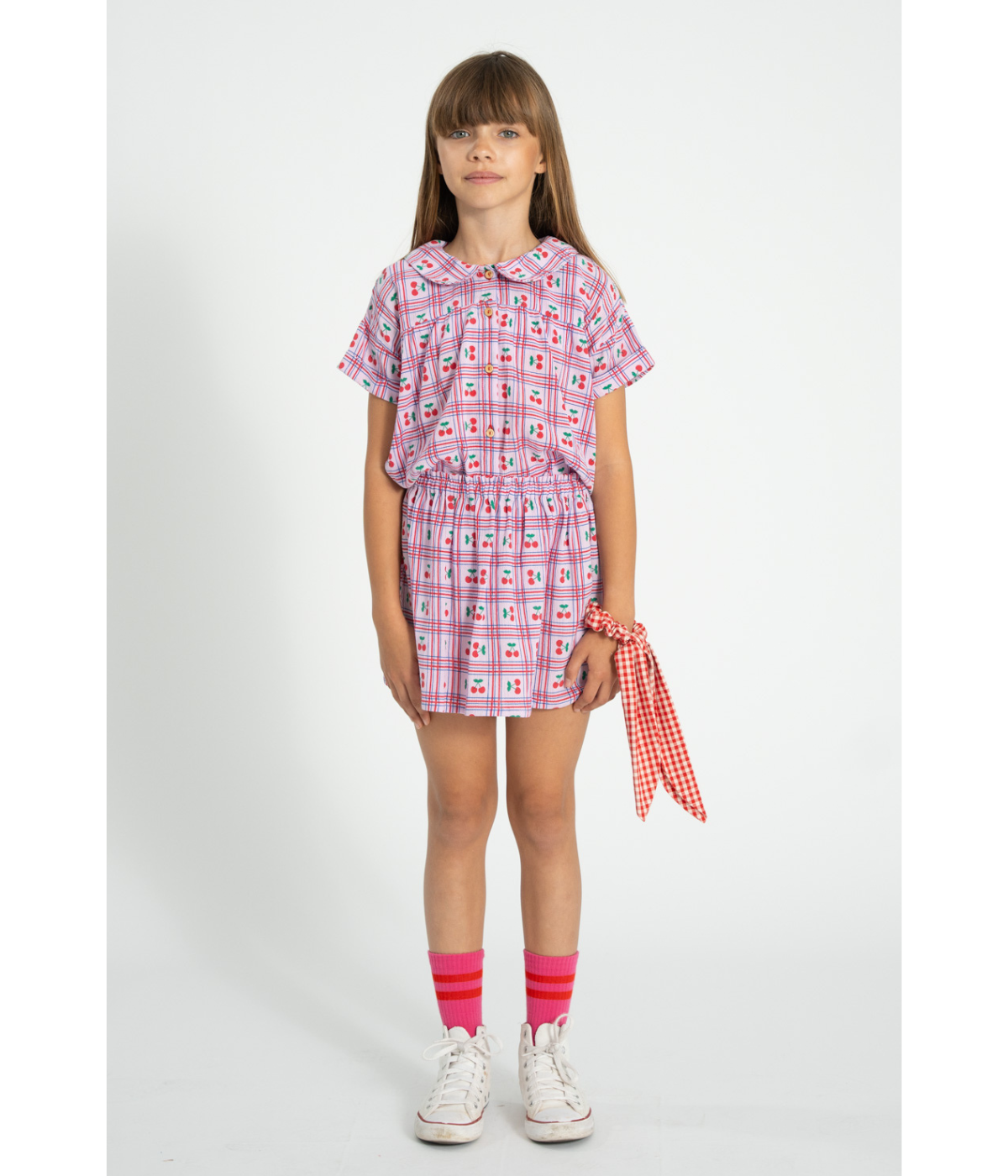 Twirl into summer in this delightful lilac skirt bursting with cherry prints! Perfect for those days when you want to add a pop of fruity fun to your wardrobe. The playful allover cherry pattern brings instant joy and whimsy to any outfit, while the short cut keeps things breezy and carefree.