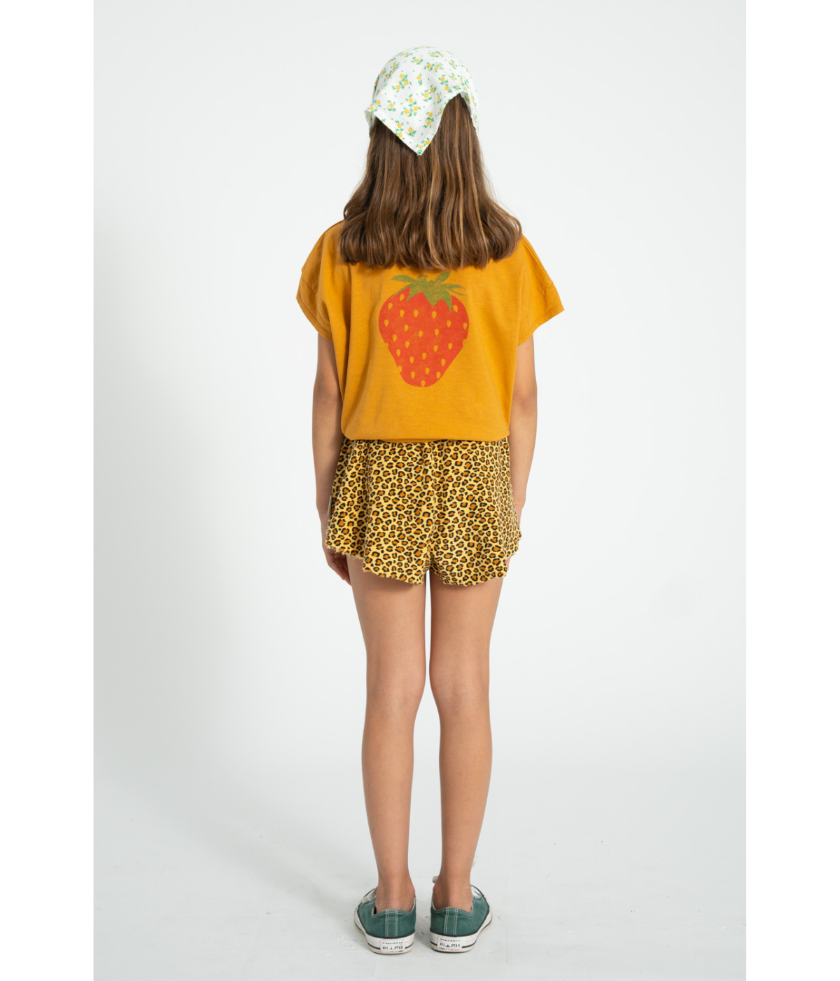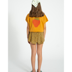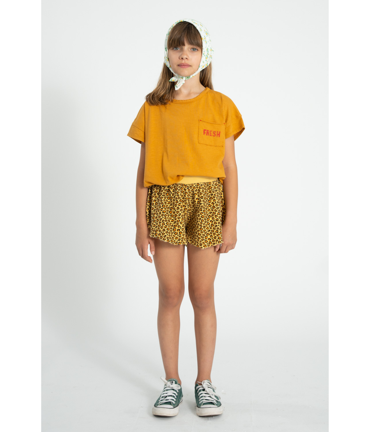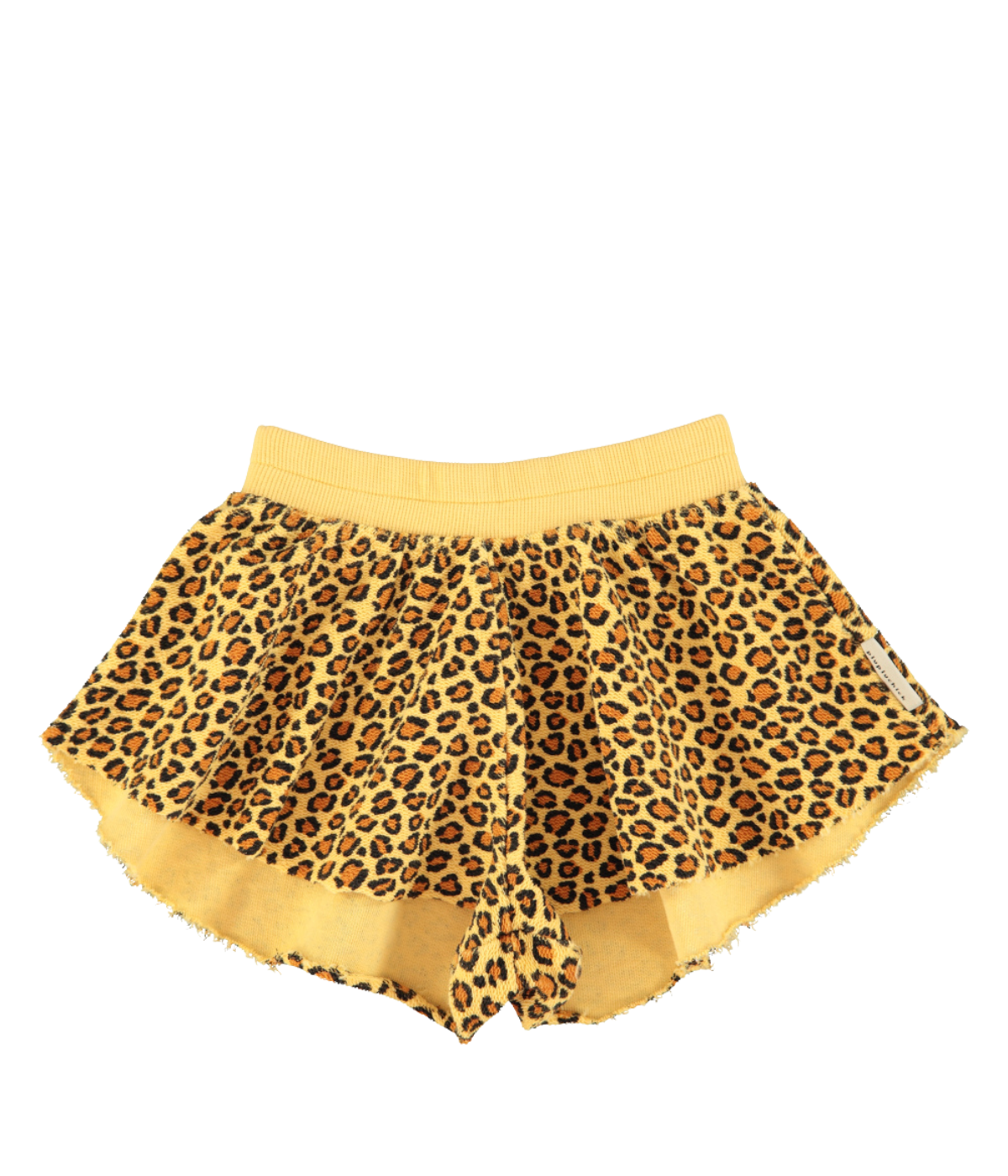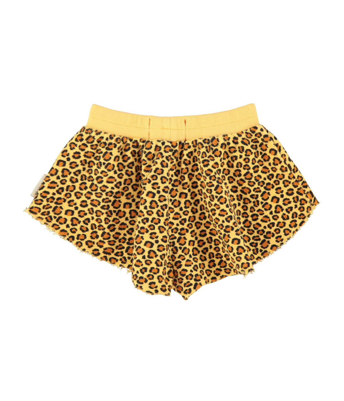 Shorts in reverse organic cotton fleece with fluid effect. Elastic waist. Raw edges.