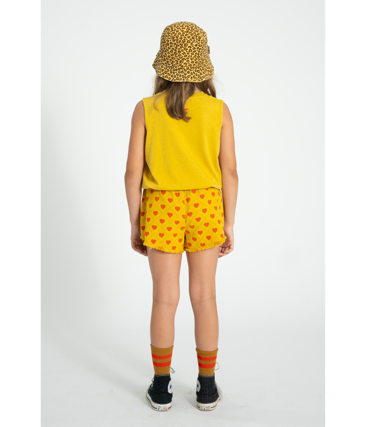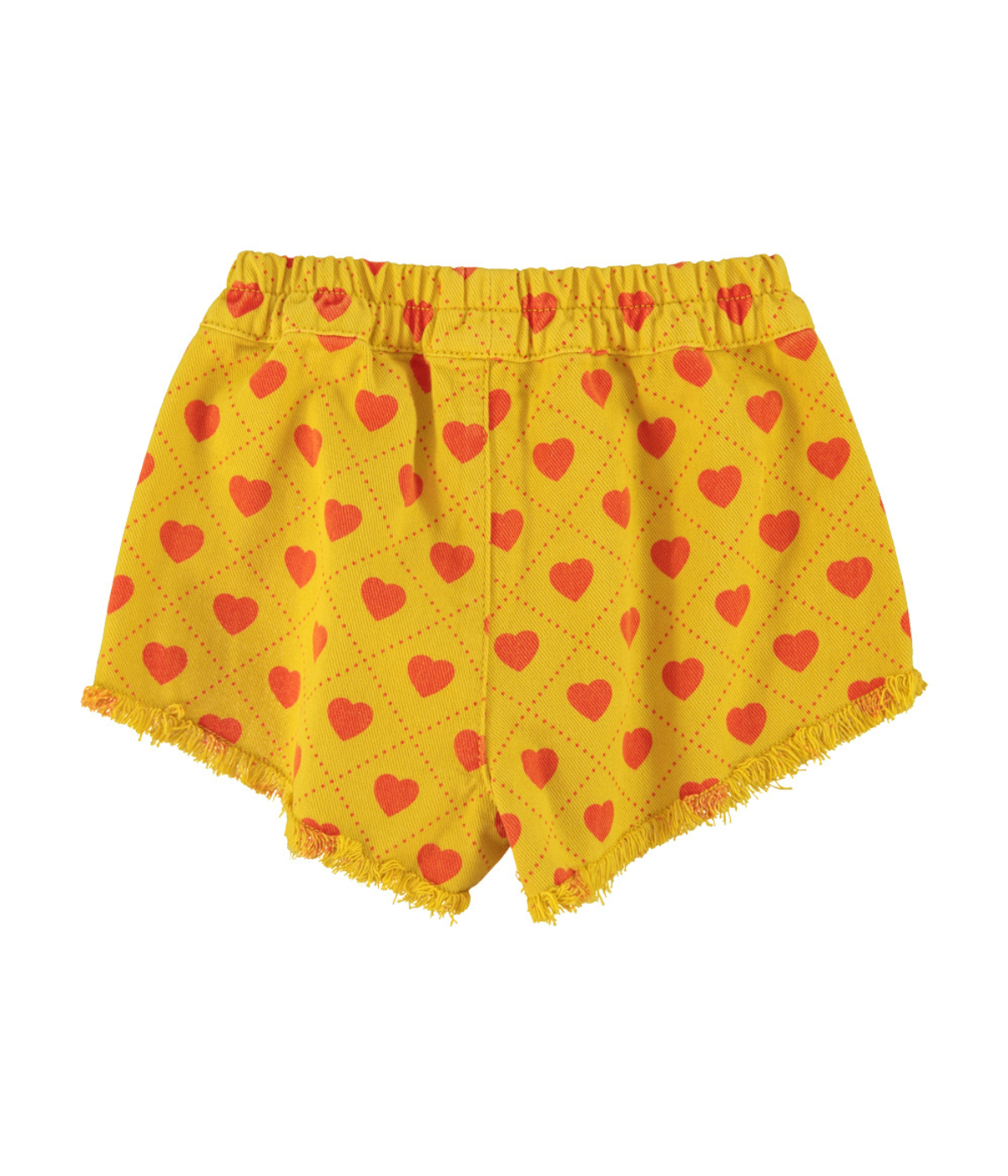 Shorts W/ Fringes - Mustard W/ Red Hearts Allover