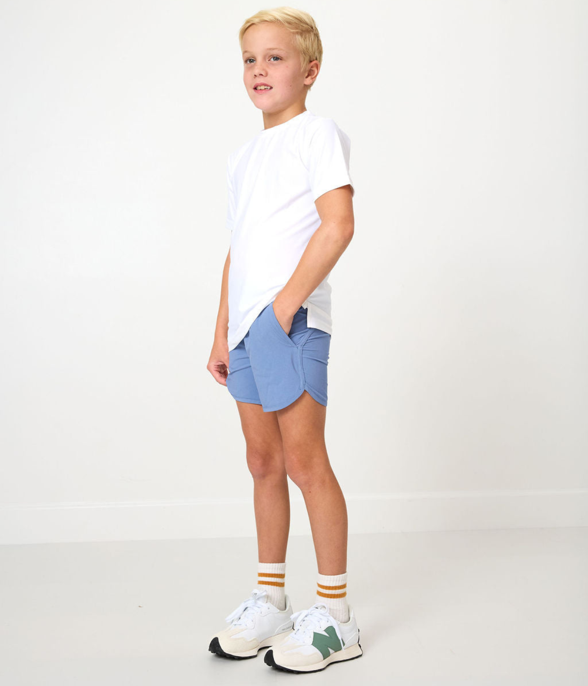 Signature sport short was designed to be the best shorts your son has ever worn. The super short features our custom, super soft performance fabric with four-way stretch, a built-in liner with anti-odor protection, and pockets for rocks, balls, and treasures for days. The classic design hits above the knee for a sharp modern fit that both moms and boys love.