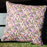 An all over gorgeous print with on a square pillow with piping. Make it the star of your sofa or bed cover - or pair it with it's sisters in blue.