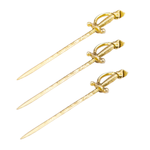 Hand carved & cast in solid brass. These sword cocktail picks are just missing olives & an extra dirty martini.