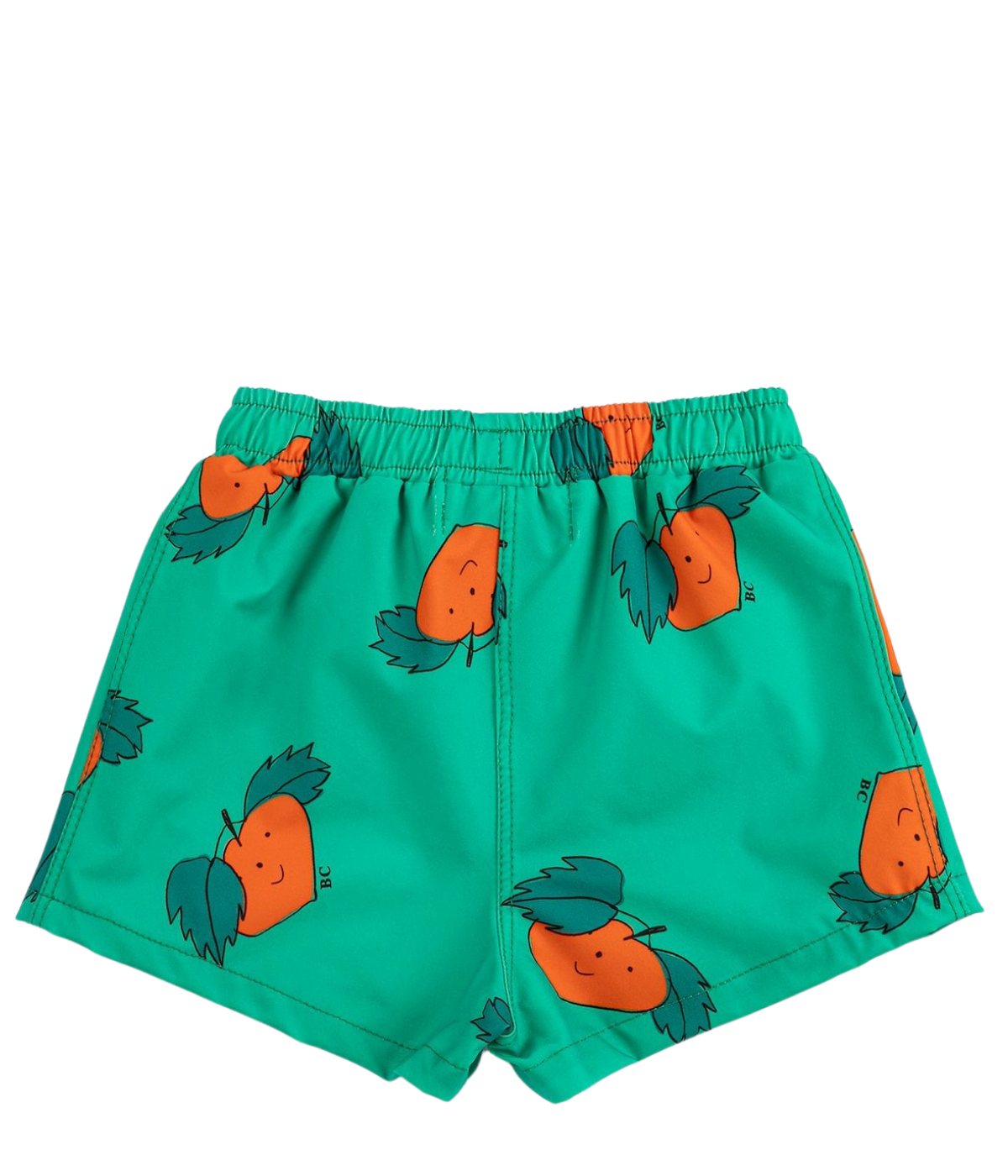 Make a splash this summer in this Tangerine All Over Swim Trunks, designed with little ones in mind. These vibrant green trunks feature a cheerful tangerine pattern that brings fun and personality to any beach day. Built for active babies who love the water, they offer comfort and durability for endless poolside adventures. Perfect for creating sunny memories!