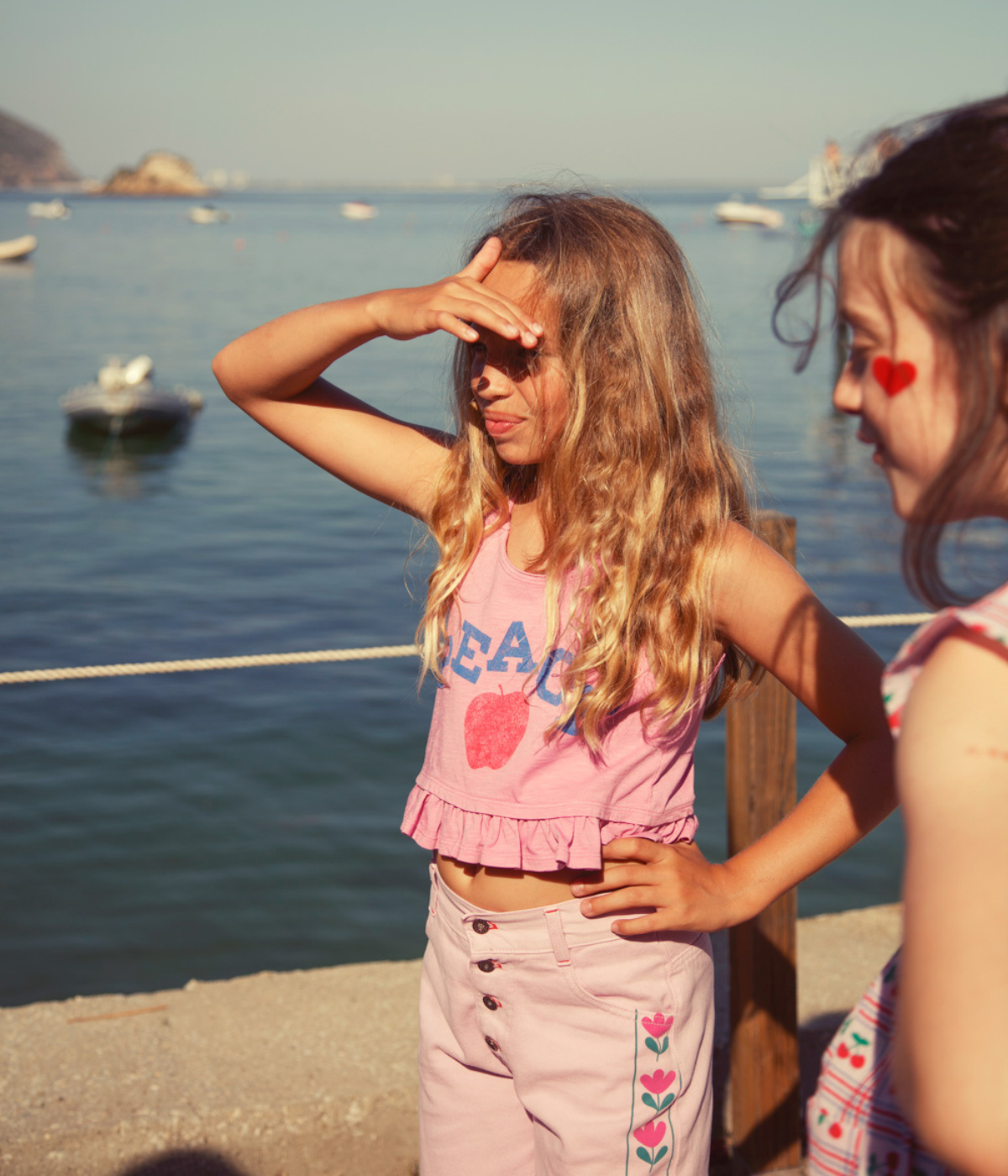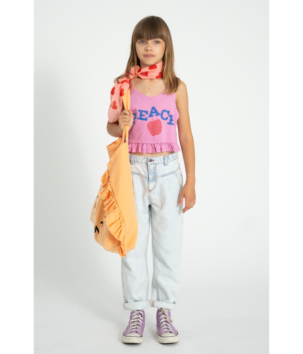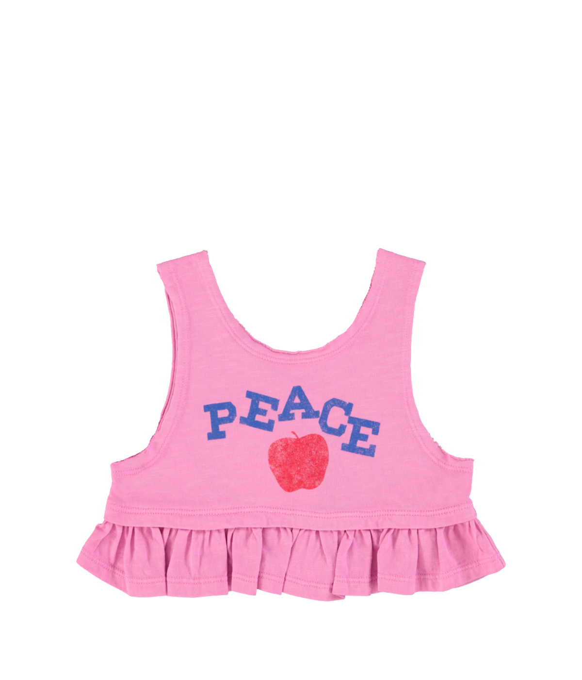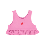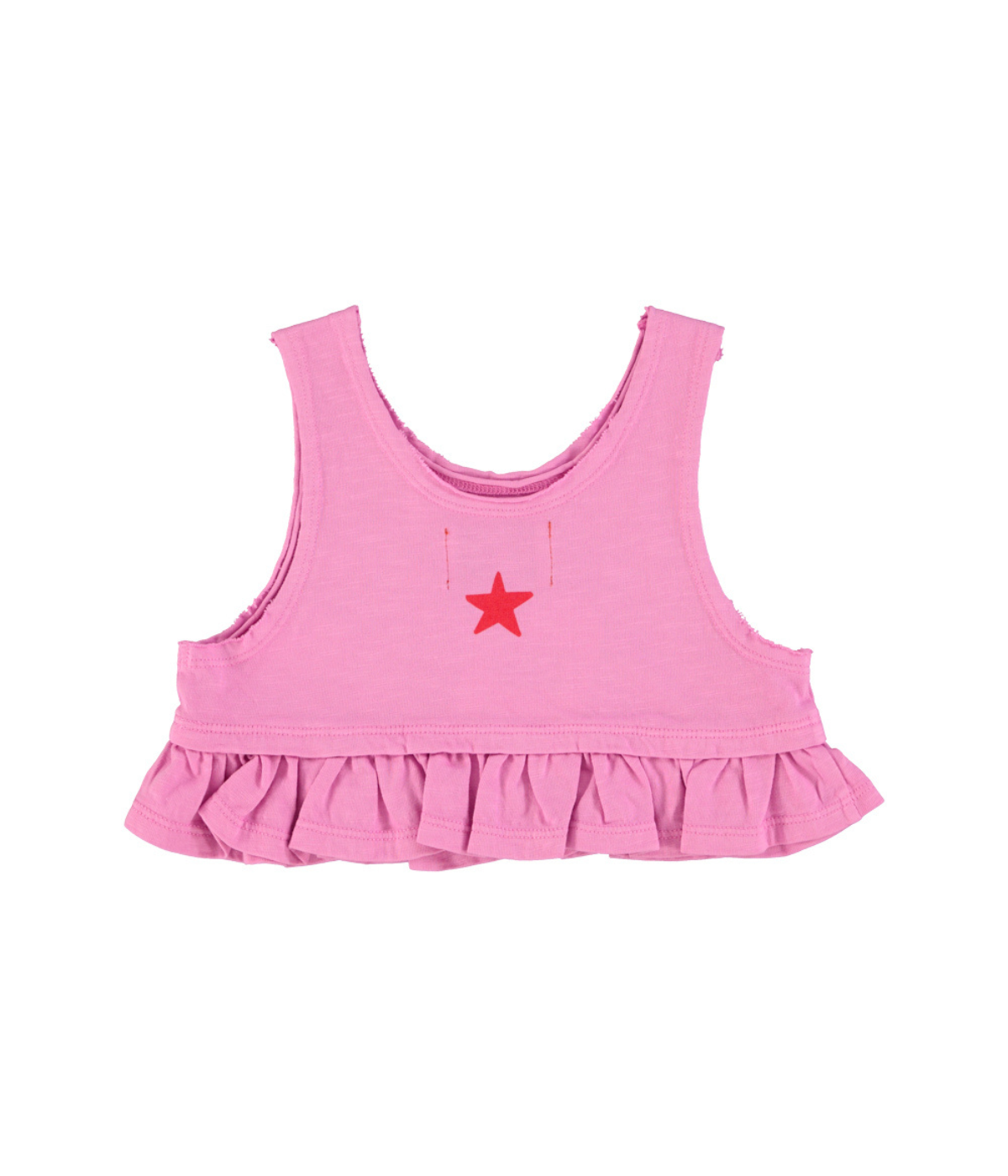 Top in jersey flamé with frills all around the waist. Detailed w/ front print and logo star print on the back.