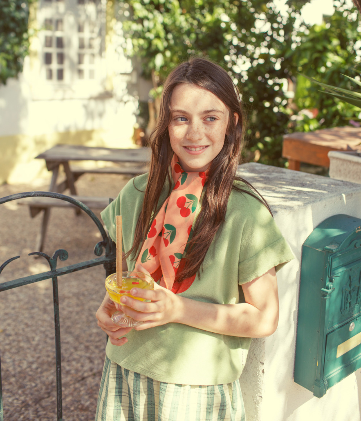 T'shirt - Light Olive W/ Cherry Print