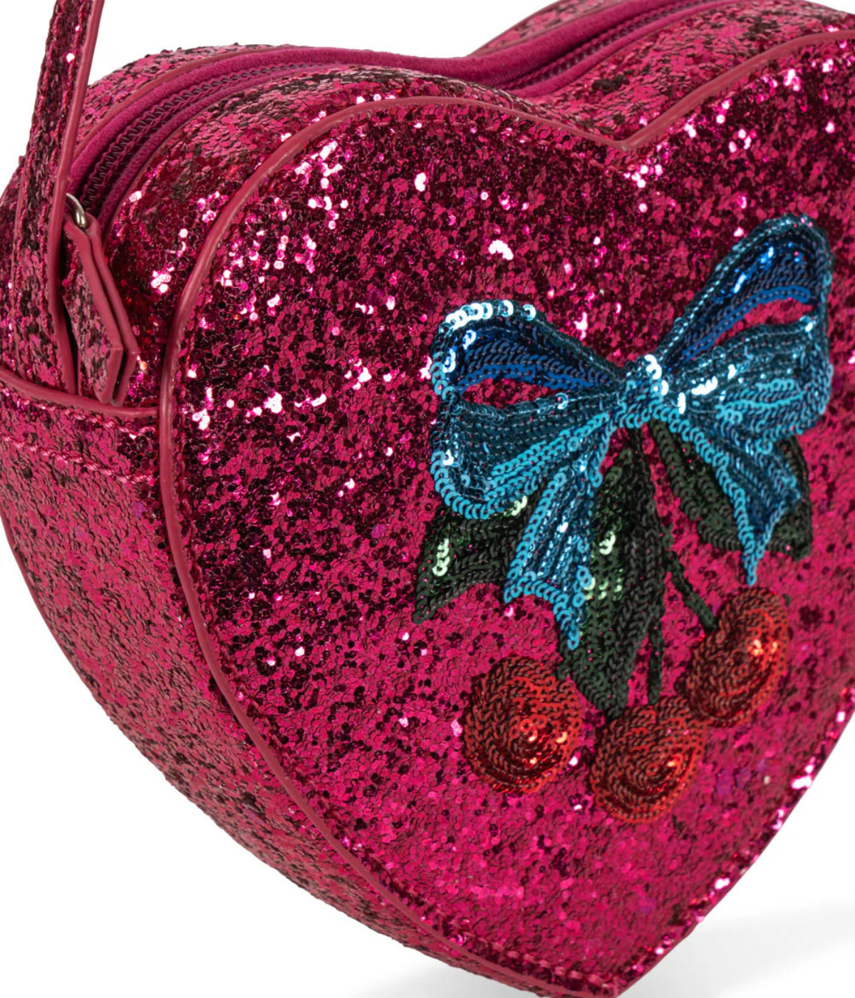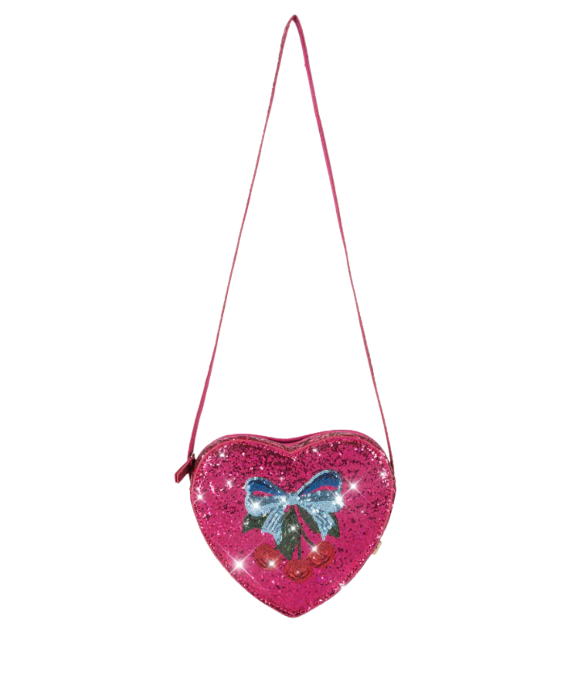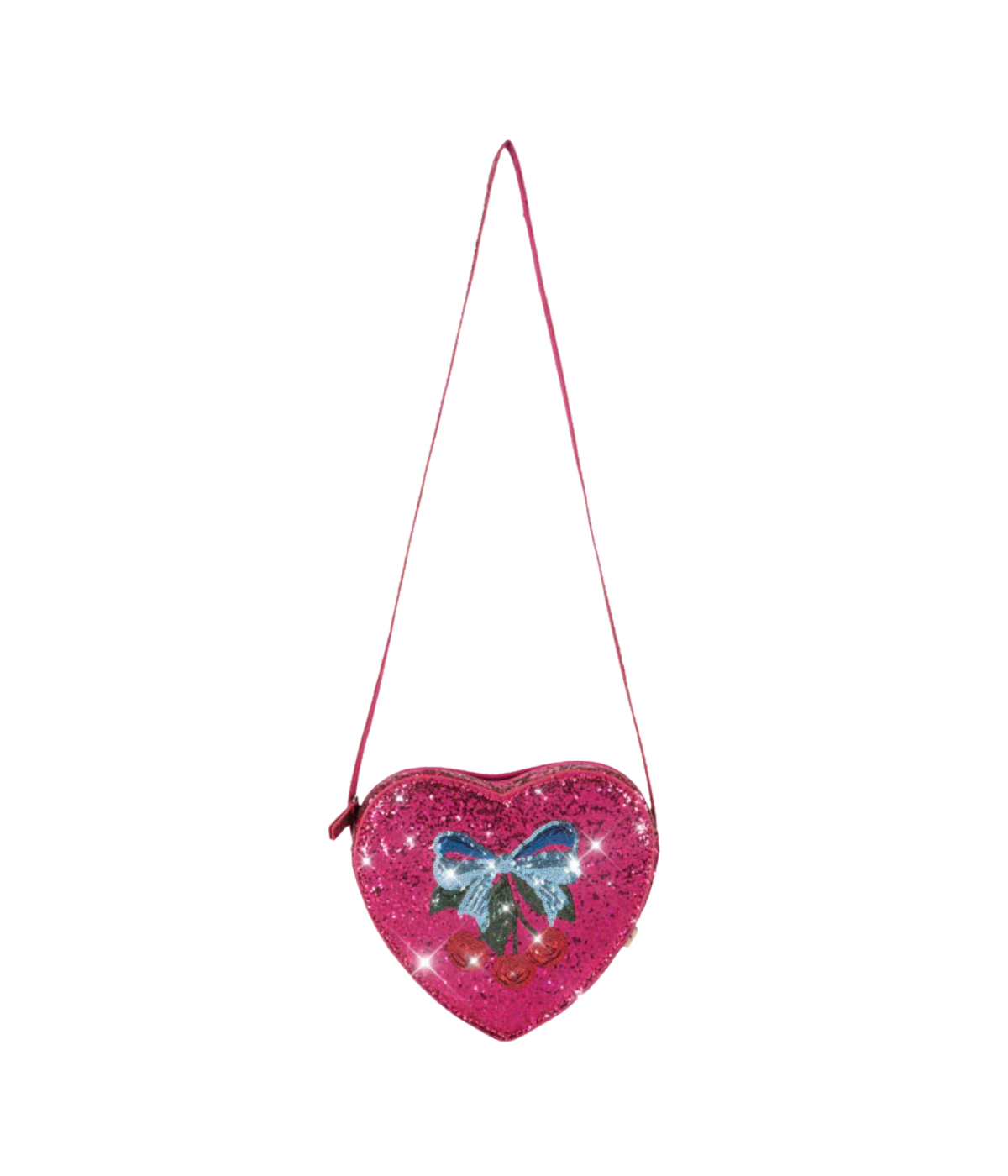 Heart shaped shoulder bag with glitter and a slim shoulder strap. Perfect for bringing all your little essentials on the go.