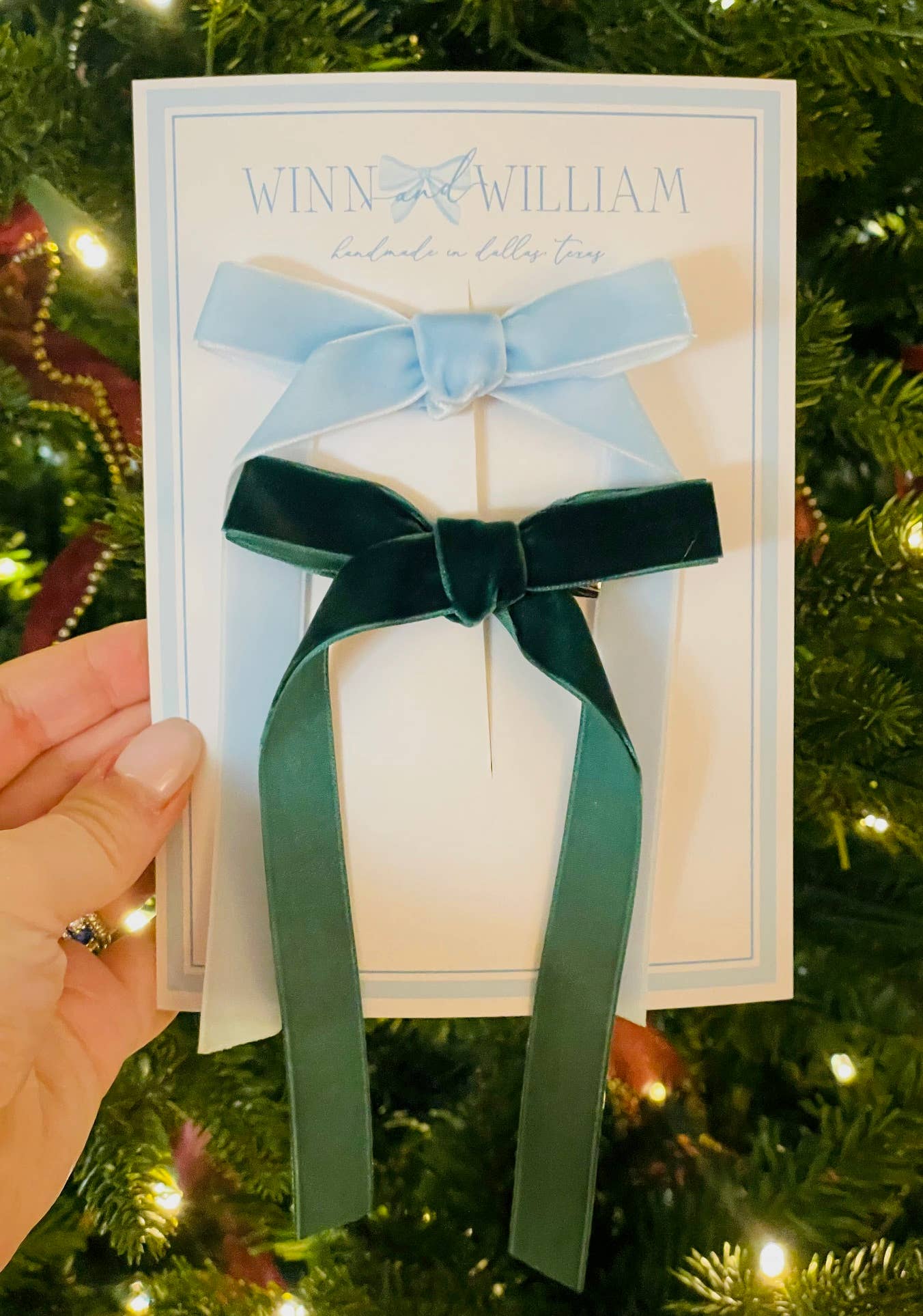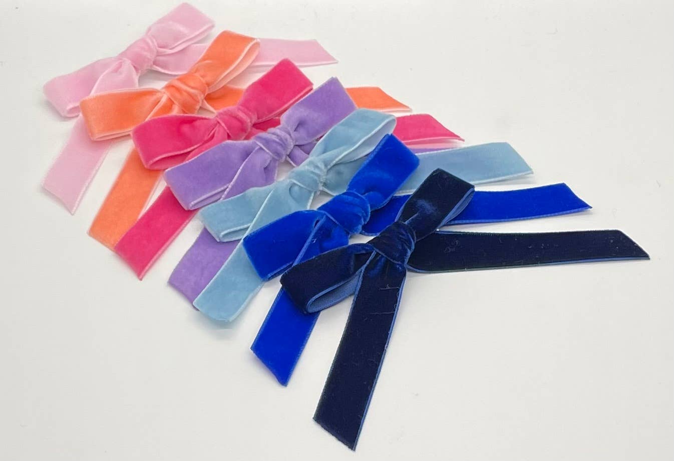 The velvet bow is available in multiple colors attached with an alligator clip.