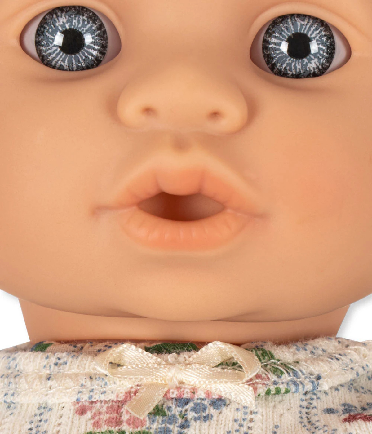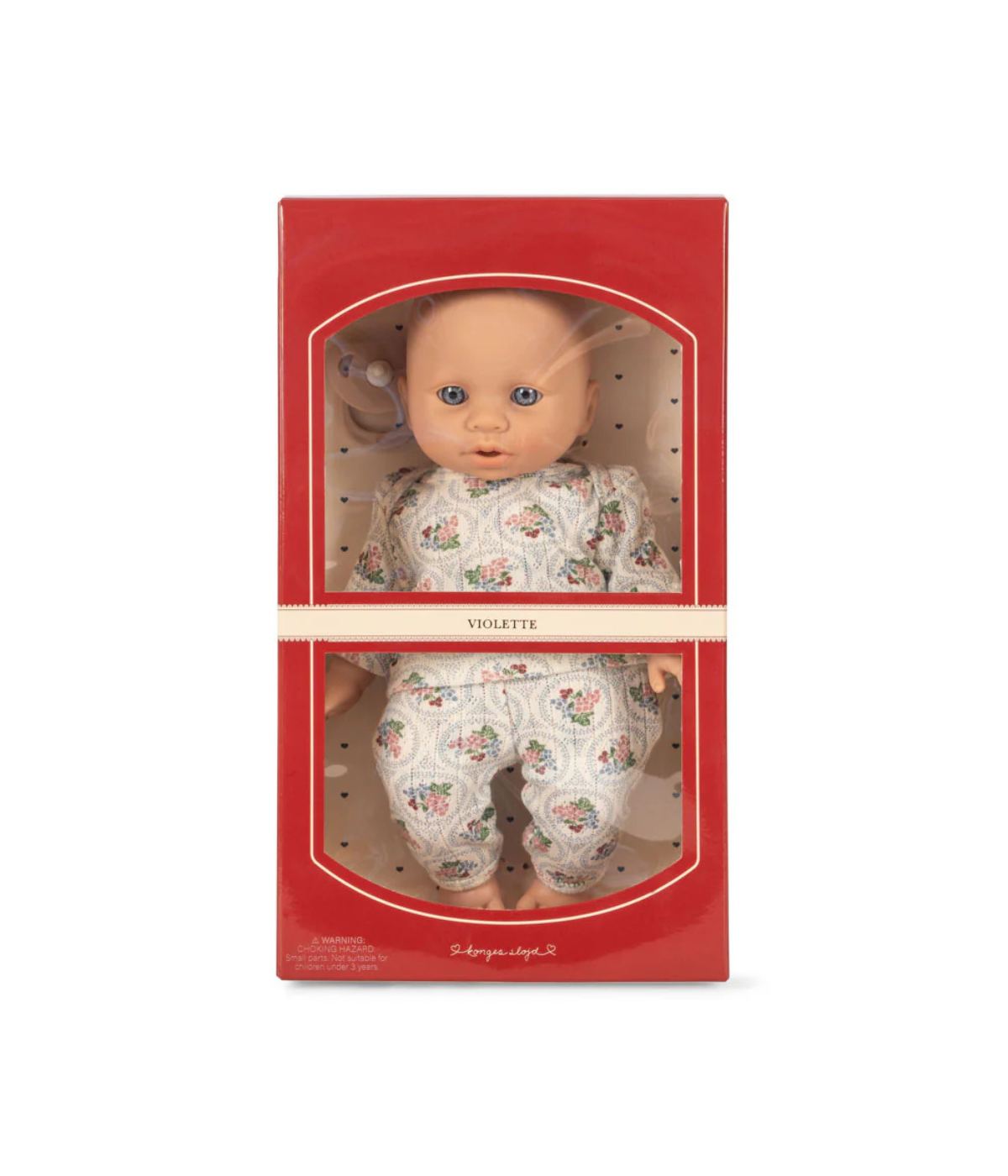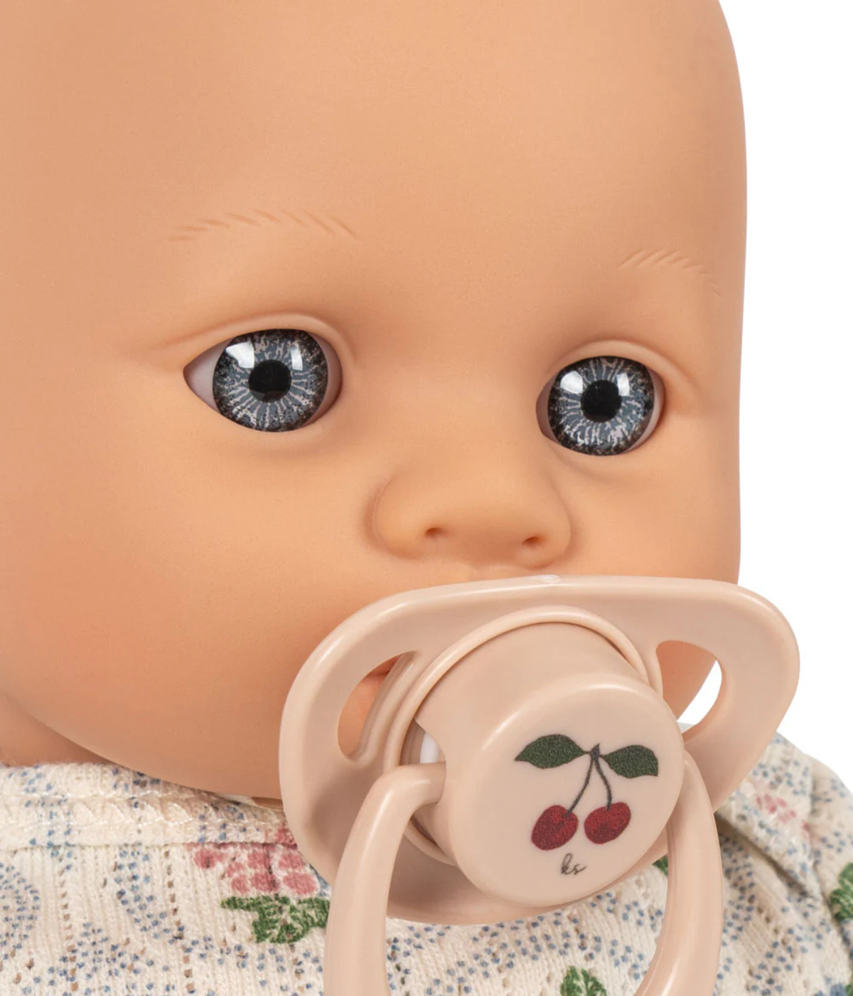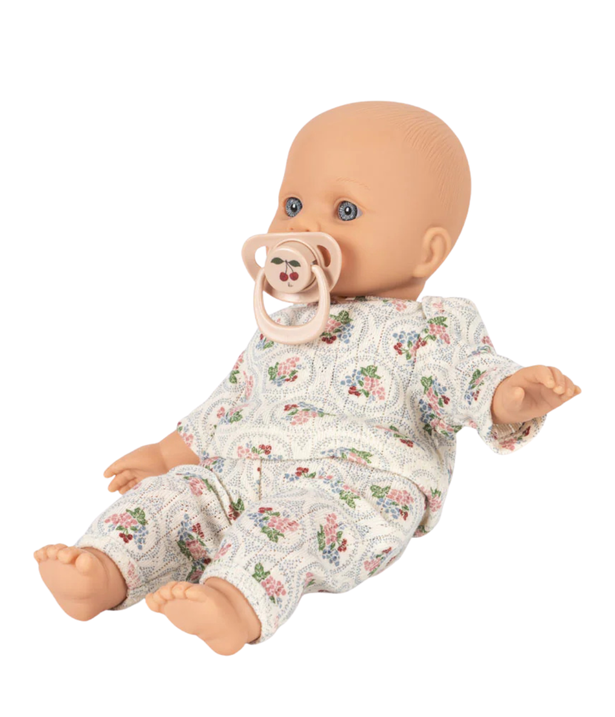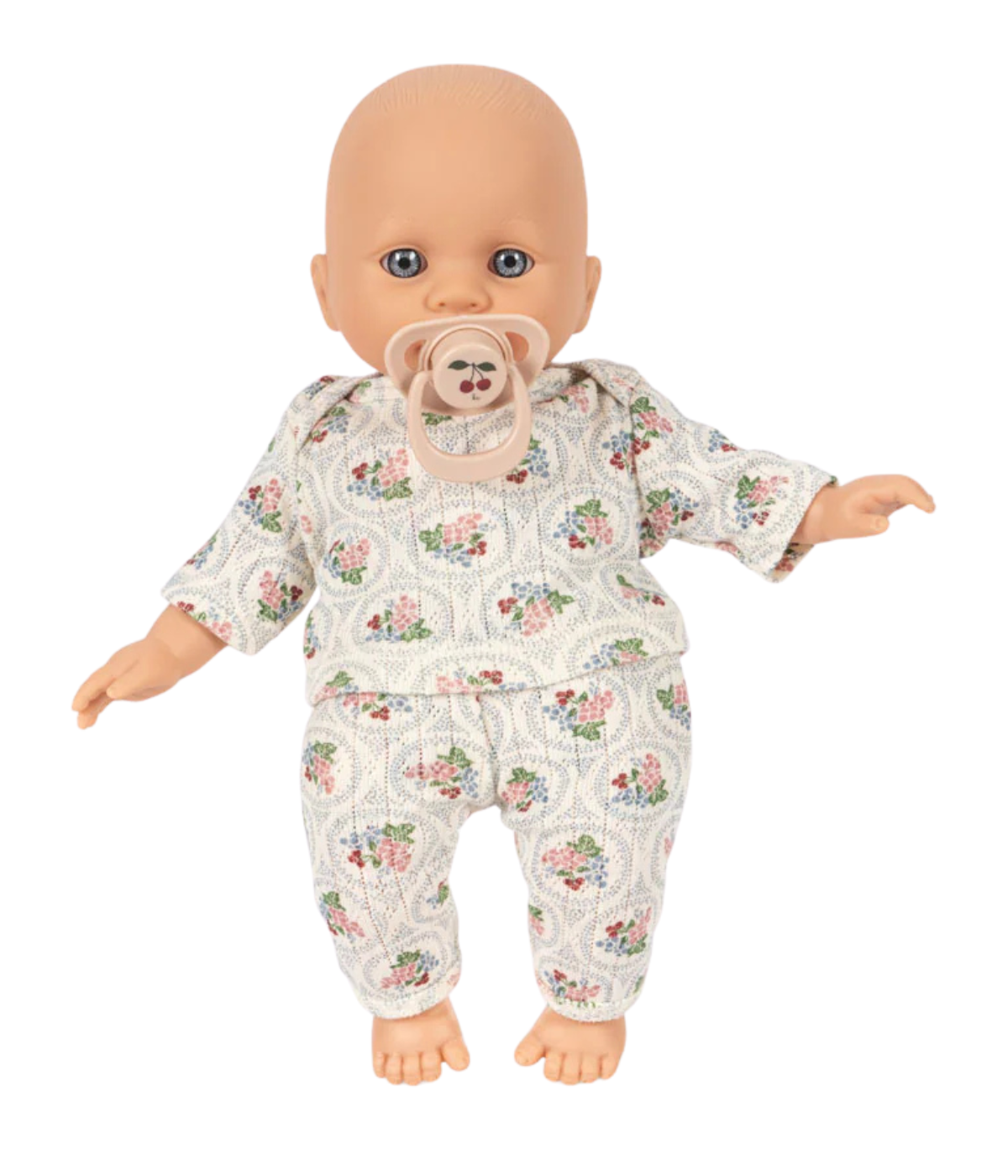 This sweet little doll is dressed in a soft pyjama set and comes with its very own pacifier for nap time.