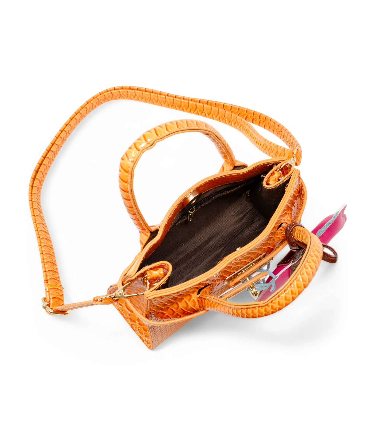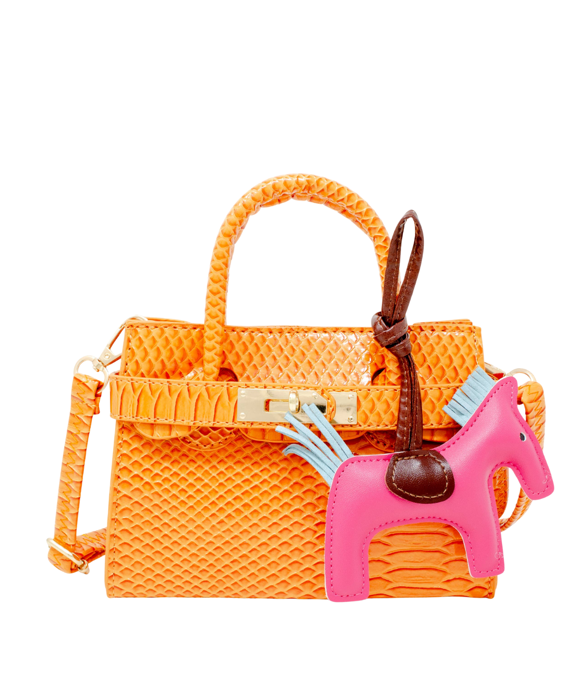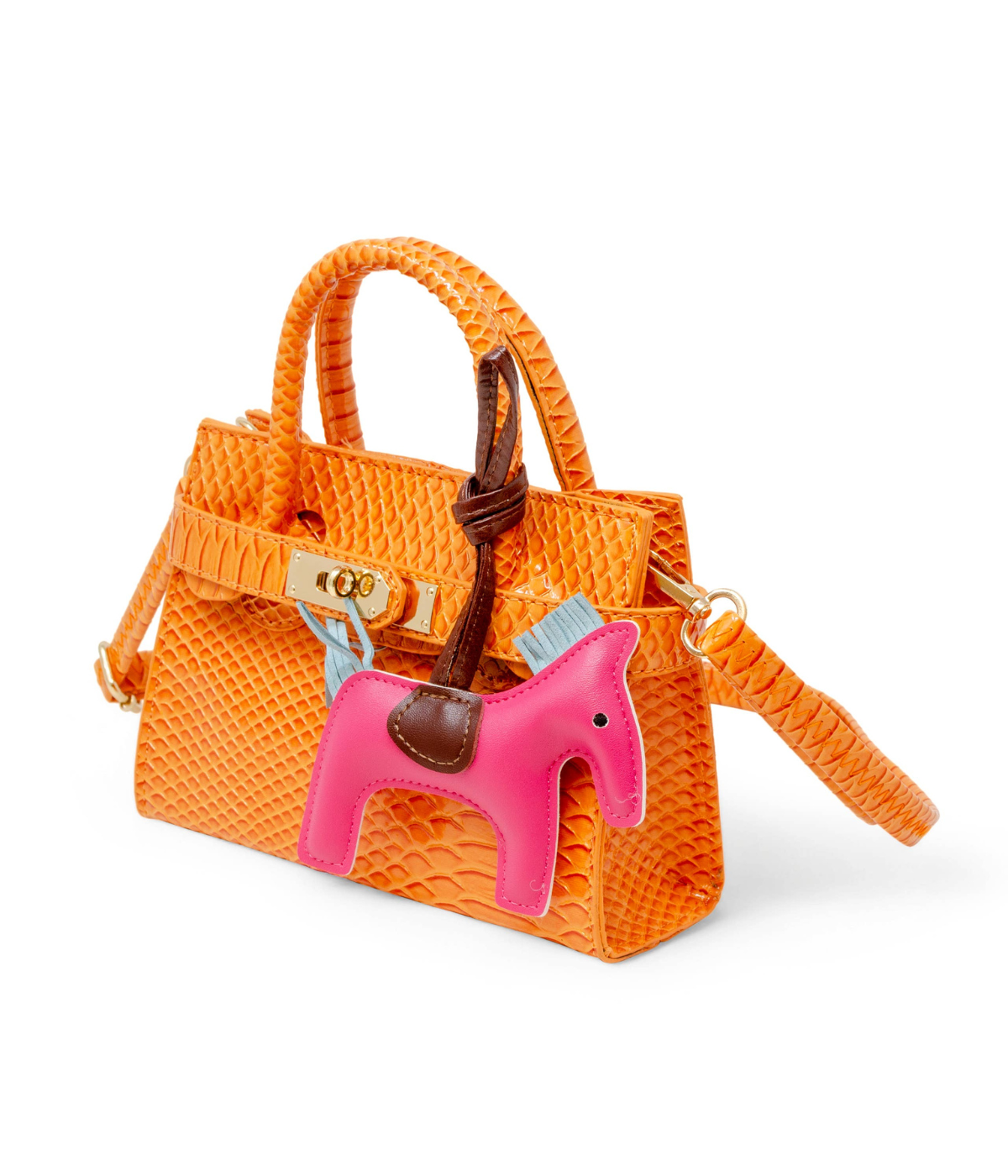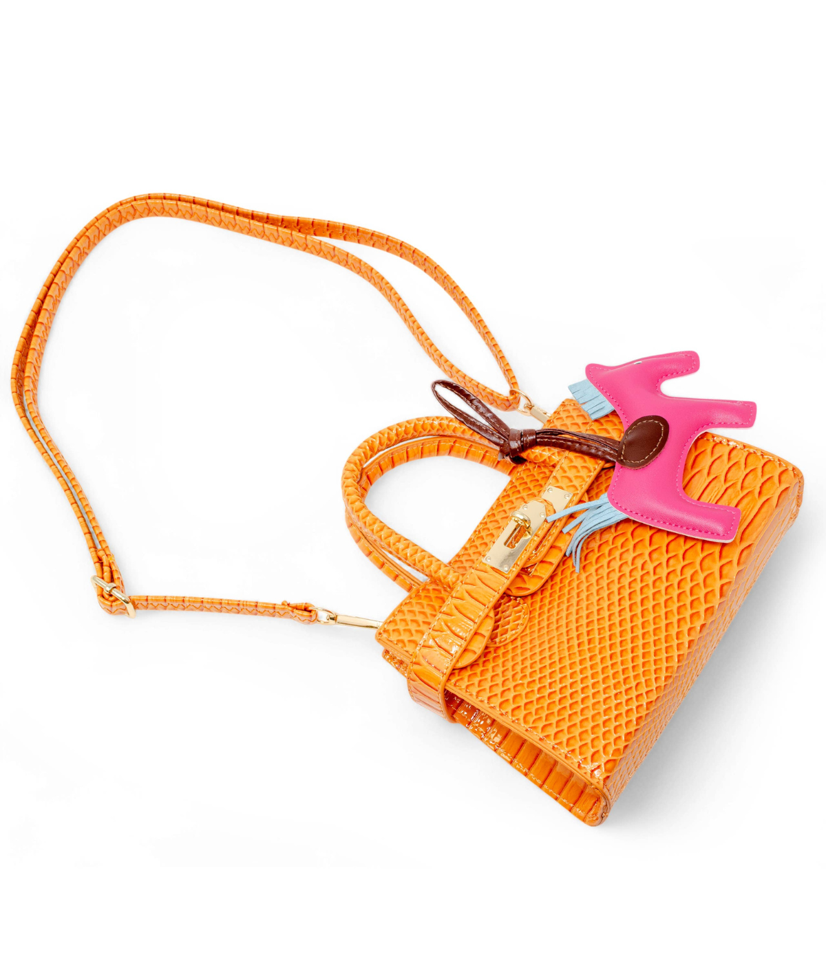 Vivid Crocodile Pony Handbag - Orange