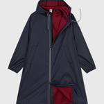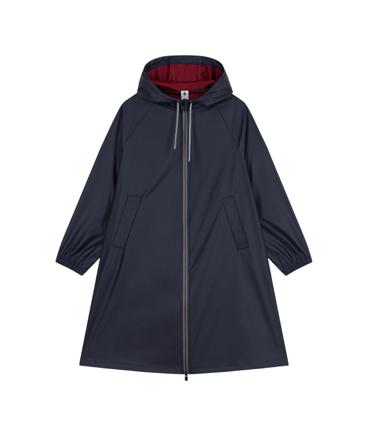 - A raincoat, longer than our iconic raincoat, in two colours, double-sided and unlined.